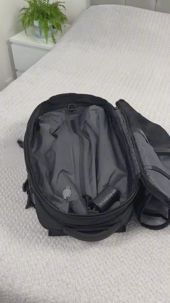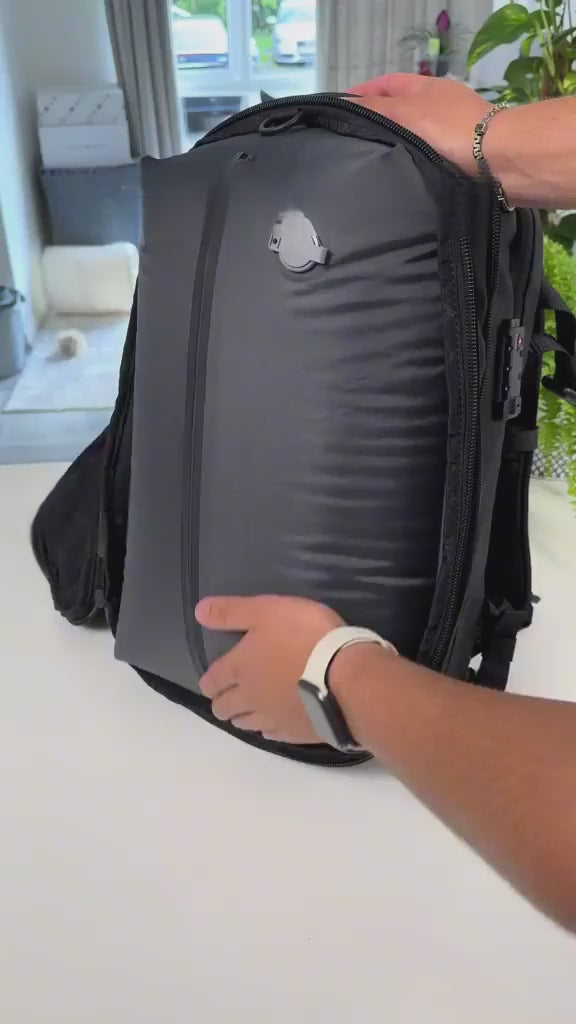 It features an integrated compression pocket that removes excess air from clothing, allowing you to fit up to 40% more than a standard personal-item bag without expanding the exterior size.
